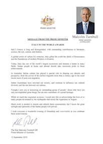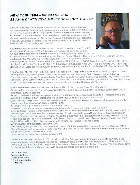 Catalogo della XVII edizione del Premio ITALIA nel Mondo, BRISBANE 2016